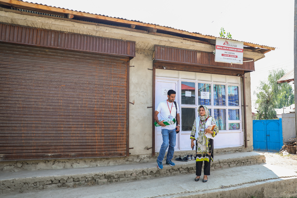 Rayees Ahmed Mir and Taheem Jaffar, MSF community mental health workers approaches a house where an elderly man sits on the porch. “Assalamu alaikum,” he greets. “I’m Taheem from MSF. We provide free mental health services in the area. May I talk with you for a few minutes?”