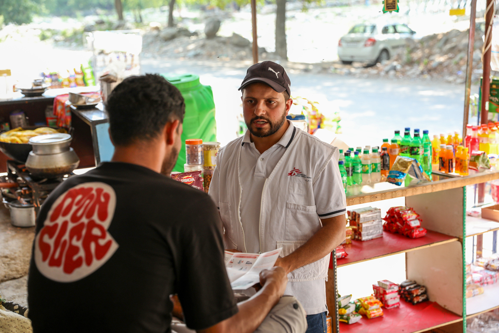 “Our day starts at 9 AM” explains Taheem, who has been with MSF since November 2020. “At the clinic, we first check our activities for the day and discuss strategies—what material we need, which locations we’ll visit, which groups we’ll meet.”