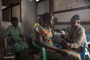 - A midwife measures the blood pressure of a pregnant woman during an antenatal consultation at the MSF clinic in Gom Koi, Twic County, Warrap State, South Sudan. In this remote area, where access to formal health services is extremely limited, MSF’s mobile and fixed clinics provide a crucial lifeline for expectant mothers to detect complications early and receive essential care. ©Nicolò Filippo Rosso