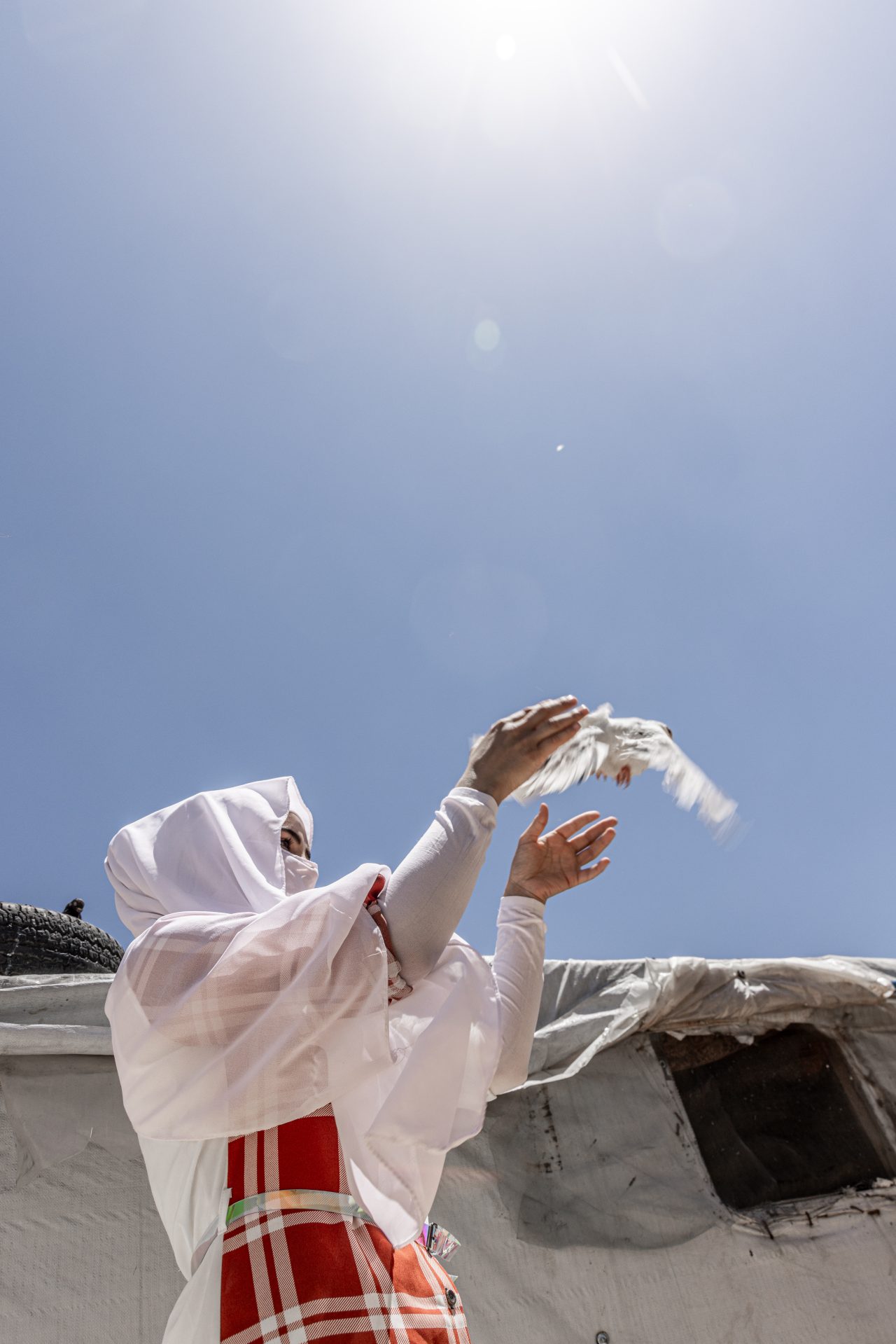 - Maya [name changed to preserve anonymity], a Syrian refugee in northeast Lebanon, releases a dove she tends to in her family’s tent in Arsal. A widow and a victim of child marriage, Maya has endured severe mental trauma, especially after the death of her daughters in a fire. Maya now looks for ways to heal herself and those around her through preaching communal care and mental health support. However, the recent anti-refugee sentiment in the region has made it difficult. ©Carmen Yahchouchi for MSF