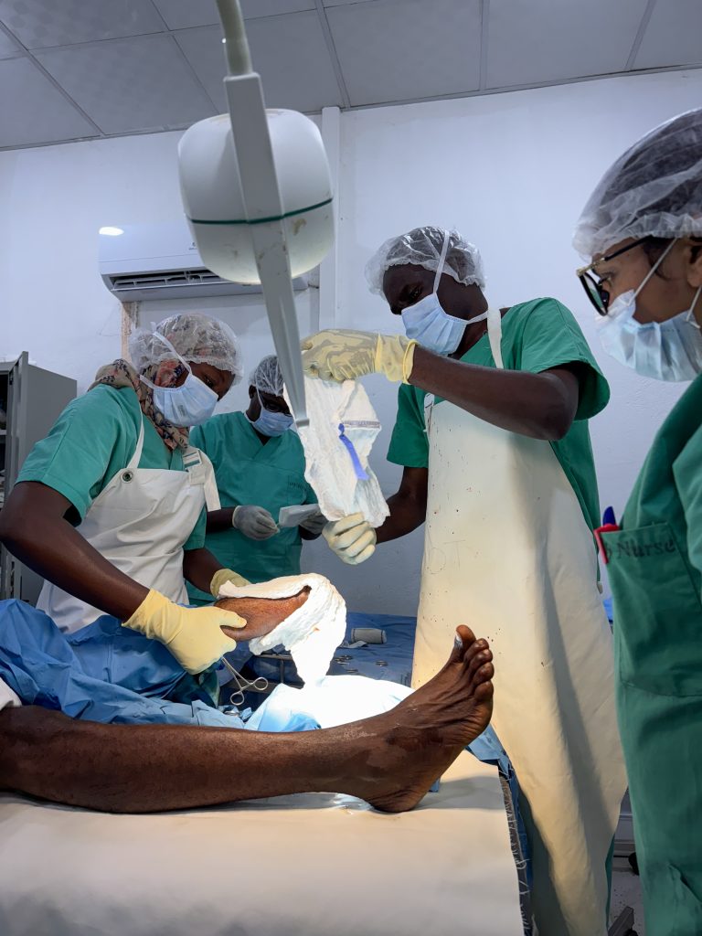 IA* used to work as a watchman in a university in El Fasher. A day before the fall of the city, he was shot in the leg in the middle of a shooting and his tibia shattered in several places. “The wound was bleeding, and my brother made a tourniquet. Then he lifted me onto a donkey cart and brought me here. Can you imagine the pain? It was very hard”, he says. He spent three days on the trails. Despite their efforts, part of his leg had to be amputated when they finally reached Tawila hospital.